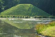 Gartenkunst im Queen-Auguste-Victoria-Park: Der Erdkegel spiegelt sich im Wasser (Bild: Musevita) |