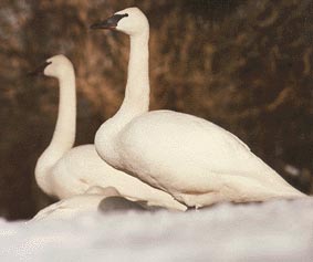Der Trompeterschwan ersetzt ökologisch in Nordamerika den altweltlichen Singschwan und bewohnte ursprünglich weite Gebiete der nördlichen USA - Staaten und Kanadas, insbesondere die weiten Prärieseen. Abschuß zur Feder - und Fleischgewinnung ließen den Bestand 1932 auf 69 Exemplaren zusammenschrumpfen. Strengste Schutzmaßnahmen und die Errichtung eines 155 qkm großen Reservates in Montana hoben den Bestand bis 1954 auf 642 Tiere;davon lebten 380 im genannten Schutzgebiet und 87 im Yellowstone Park. Bis 1957 zeigten sich leicht rückläufige Tendenzen, dann begann der Trompeterschwan verstärkt Brutreviere außerhalb der Reservate zu besiedeln. Mitte der 70er Jahre betrug die Gesamtpopulation zwischen 4 000 und 5 000 Individuen und ist nicht mehr vom Aussterben bedroht.