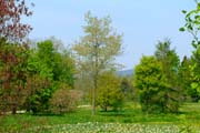 Queen-Auguste-Victoria-Park: Die Schlosswiese blüht vor der Kulisse der jungen Bäume (Bild: Musevita)